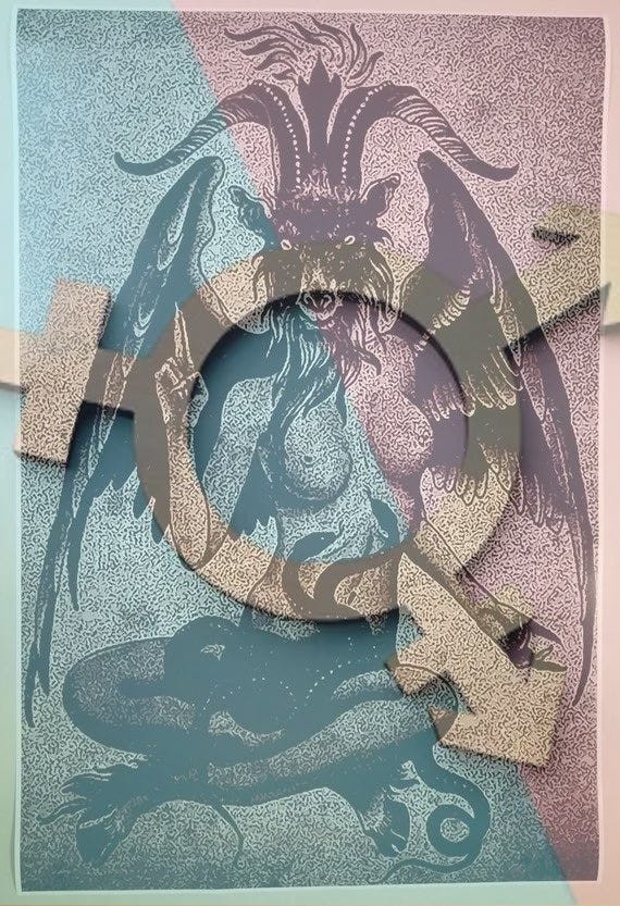 So-called gender dysphoria can indicate psychological, biological, or neurochemical mix-ups that can be addressed in various ways — including anatomical & social transformation. Yet this need not be looked at exclusively as renormalization. Shamanic lineages often exhibit a high degree of liminality and protean shifting in their gender play and sexual experimentation. And the lineages of Western occultism have made prominent use of the persistent symbol of the hermaphroditic trans-species Baphomet entity to suggest the fluid, post-conventional & coincidentia oppositorum aspects of occult theory and practice.